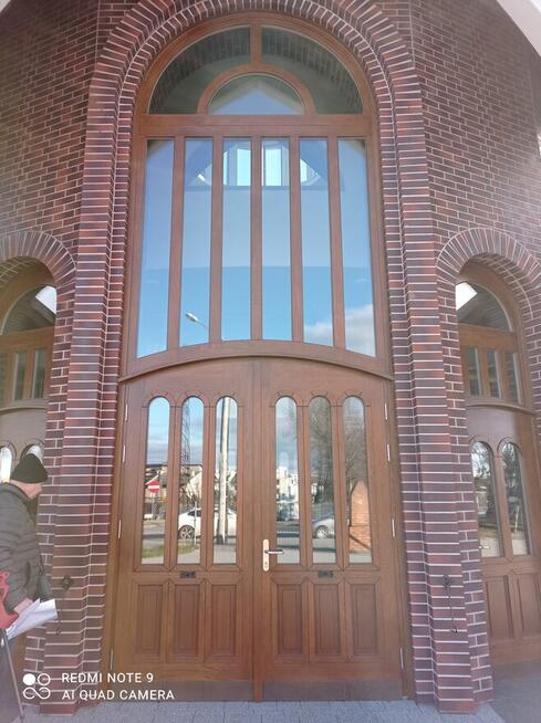 Nowe, drewniane drzwi wejściowe. Drzwi wykonane są z wysokiej jakości drewna w dowolnej kolorystyce. Elegancka i solidna ...